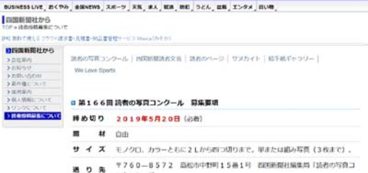 コンテスト 四国新聞社 第166回 読者の写真コンクール 題材 自由...